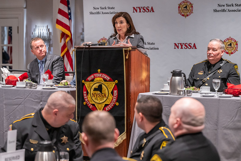 Governor Kathy Hochul spoke at the New York State Sheriff’s Association Winter Conference in Albany on Wednesday. The governor spoke of her proposed 2025 state budget by highlighting that $347 million is included for local law enforcement.