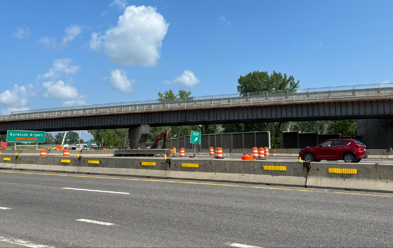 With the new flyover ramp from Interstate 481 northbound to State Route 481 now open, construction on concrete noise barriers will continue to be installed along the approach on the right side of the ramp. Traffic traveling on Interstate 481 northbound to Clay, Fulton, or Oswego must use the two right lanes for Exit 96 (State Route 481/I-81 south) to continue on State Route 481 north. Alternatively, traffic traveling northbound on I-481 to I-81 north, toward Watertown, must use the two left lanes and take Exit 9N.