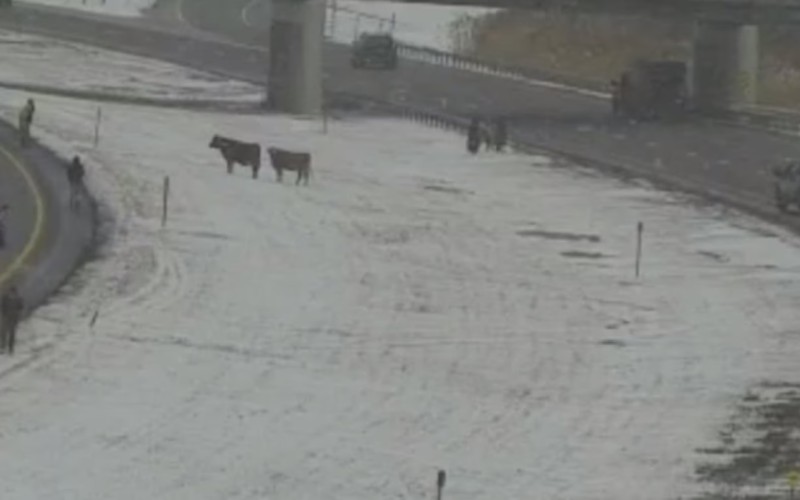 State and local responders, along with bystanders, attempted to gather the cows, which were seen running loose in the median and along the shoulders of the busy Thruway. Video and camera footage showed at least two animals moving around on the roadway as people worked to contain them.
