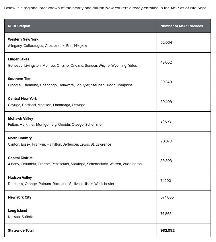 Nearly one million New Yorkers are now enrolled in State-administered Medicare Savings Program (MSP). Governor Kathy Hochul said the program can help eligible older adults save an estimated average of $7,400 per year in health care costs. With the Medicare open enrollment period now open, Governor Hochul also encouraged more New Yorkers to learn about and enroll in the MSP. Many older adults are eligible for this program due to the Governor’s expansion of the MSP, which increased income eligibility limits to ensure more New Yorkers can benefit from healthcare savings.