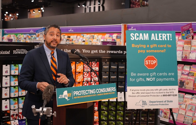 “Over the past several weeks, the Department of State has been working to get the message out to both businesses and consumers about this important new law that educates and protects consumers against gift card fraud,” said New York Secretary of State Robert J. Rodriguez. “We want businesses to comply with the law, and we want to help increase the public’s awareness of these increasingly popular scams, so we encourage any business that has not already done so to post a warning notice where gift cards or displayed or sold.”