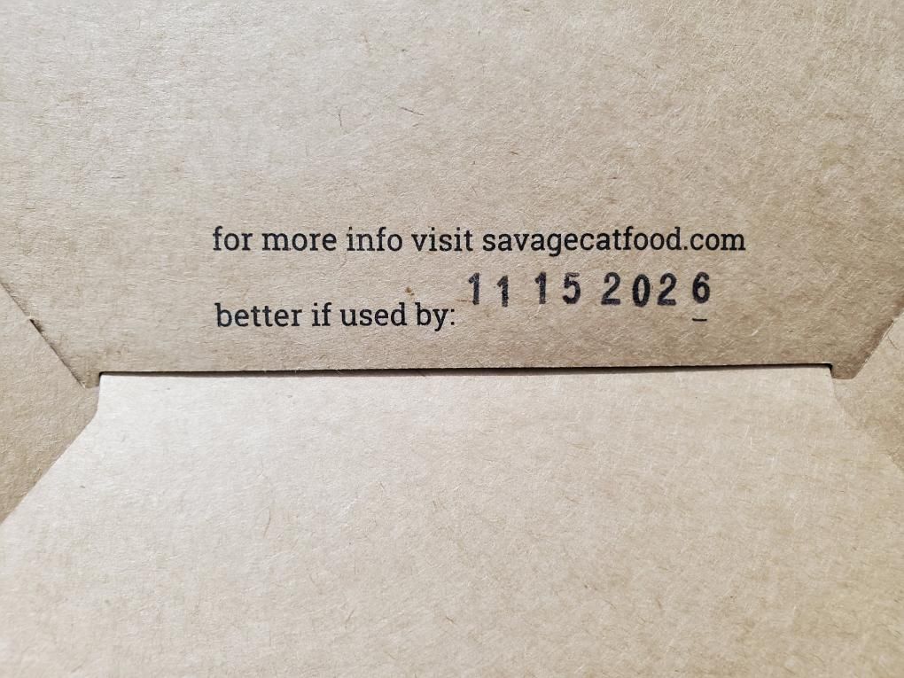 Pet owners who may have Savage Cat Food Large Chicken Boxes, sold in 84-ounce cardboard boxes containing individual plastic packets, with a lot code/best by date of 11152026 and Savage Cat Food Small Chicken Boxes, sold in 21-ounce cardboard boxes containing individual plastic packets, with a lot code/best by date of 11152026, should not feed this product to their cat or other animal. The product should also not be sold or donated.