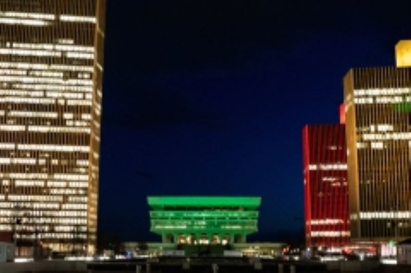 The following state landmarks were illuminated in green, yellow, and red Friday night: