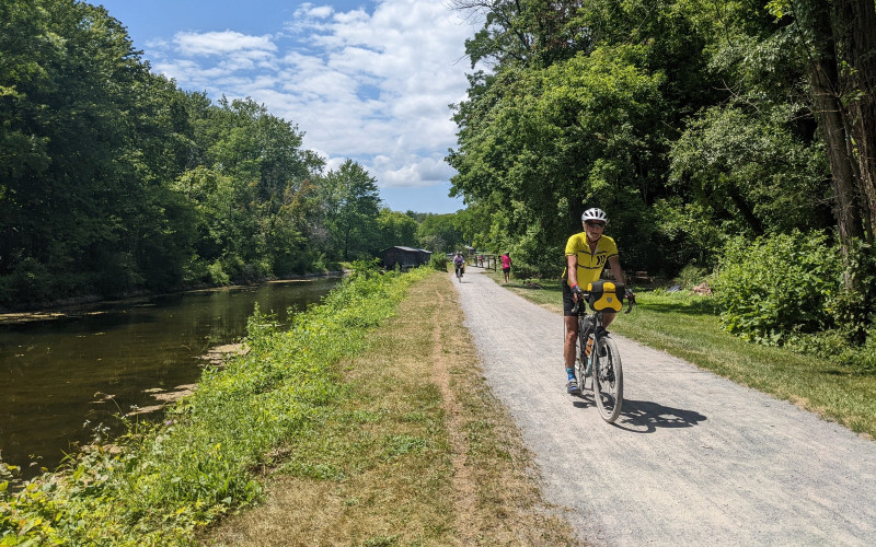 In 2020, the Canalway Trail was incorporated into New York’s flagship Empire State Trail, part of a 750-mile trail network stretching from New York City north to the Canadian border, and from Albany west to Buffalo. As part of the Empire State Trail Project, millions of dollars were invested in closing major gaps in the trail. Since the opening of the Empire State Trail, the state, local governments, and private entities have continued to invest in improving the quality of the trail, including resurfacing projects and installing additional trailside amenities. These investments are shown to boost visitation, as evidenced by nearly four million visits to the trail each year. Trail users encompass everyone from local residents out for a walk to visitors traveling from around the world to cycle the entirety of the Erie Canal, now entering its 200th year.