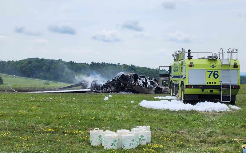 Chautauqua County officials say the pilot and co-pilot were flying a Cessna Citation X when it crashed near the airport’s main runway.