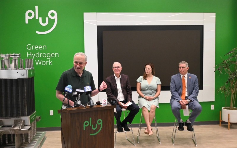 Schumer was at Plug Rochester Gigafactory on Monday to promote the seven state effort to turn the Northeastern US, including Upstate New York, into a hub for the production of green hydrogen energy.