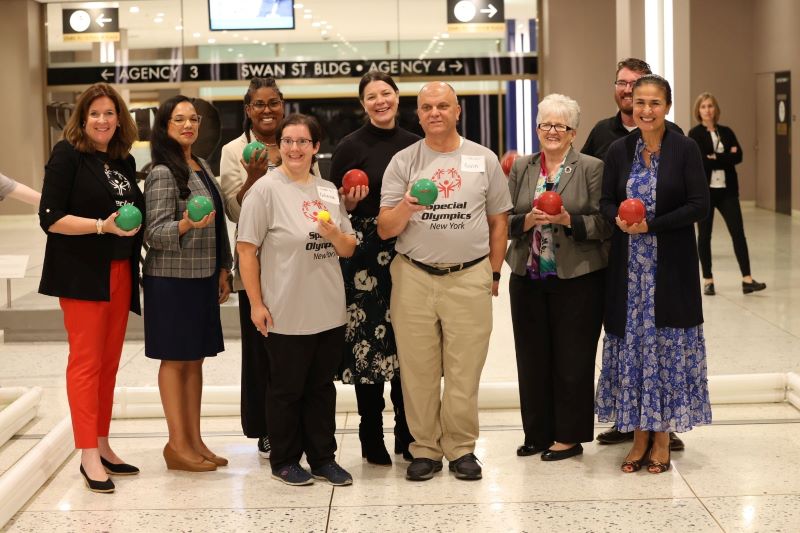 The event included a job fair hosted by the Department of Labor, mock interviews, a vendor fair, several competitive rounds of bocce with some of New York’s Special Olympians, a screening of “The Path Forward – Remembering Willowbrook” documentary and six workshops pertaining to the employment of people with disabilities, including: