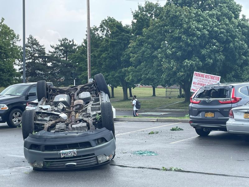 The length of the tornado was 1.4 miles and the maximum path width was 300 yards. The tornado started at I-190 at the Niagara Street exit at 12:45 p.m. and ended at Tupper and Oak streets at 12:51 p.m. Its estimated the main wind speed was 90 miles per hour.