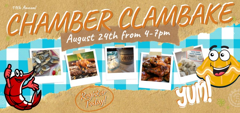 - The Chamber clam bake is August 24 at Yawger Brook.
