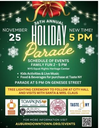 - The Holiday parade and tree lighting will be November 25. The Equal Rights Heritage Center will host a pre-parade event from 2-5PM. The parade time this year will be 5PM.