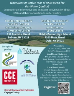 - Two upcoming discussions, November 12 at Cayuga Community College and November 18 at South Seneca High School.
